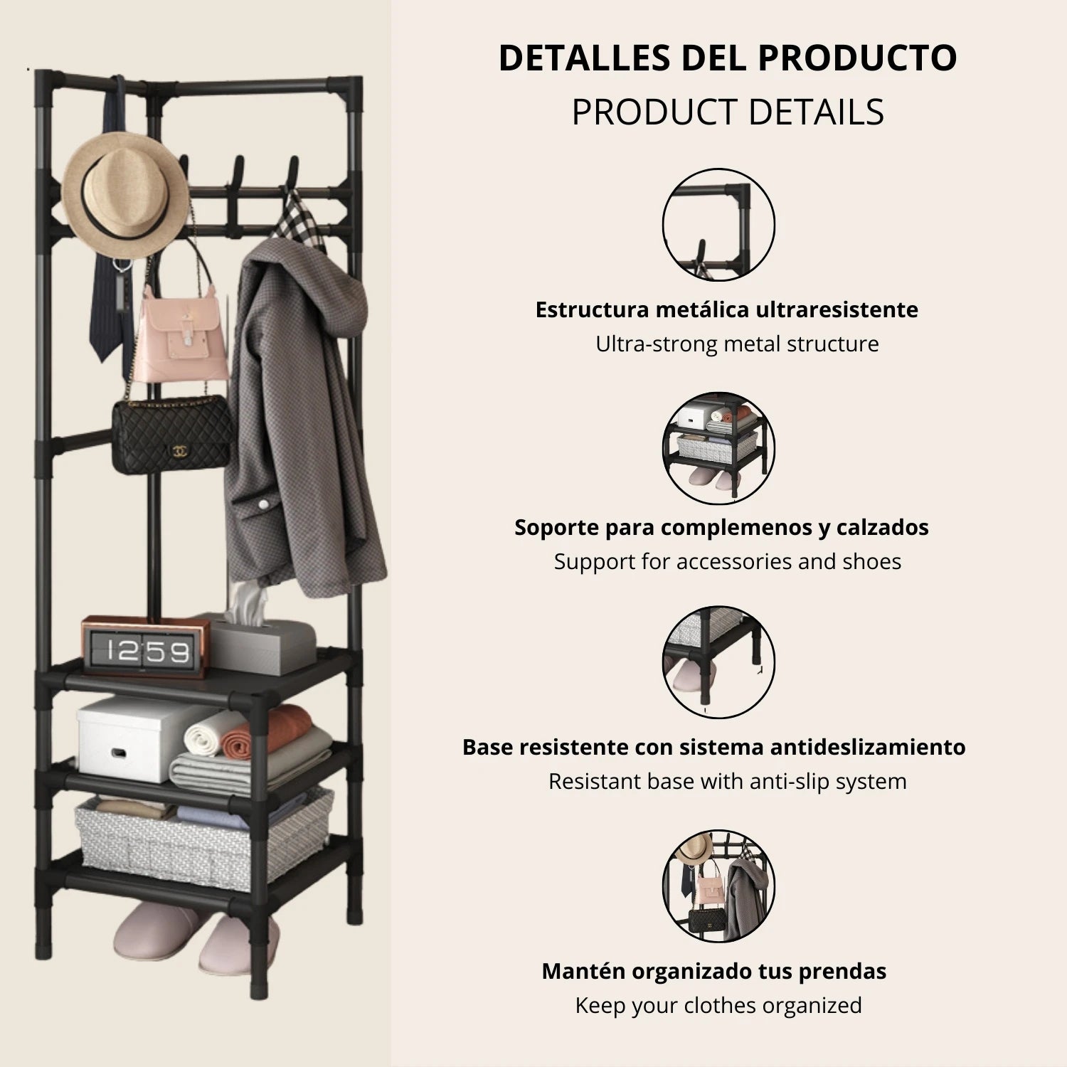 Versatilidad de uso: perfecto para organizar ropa, zapatos y accesorios.