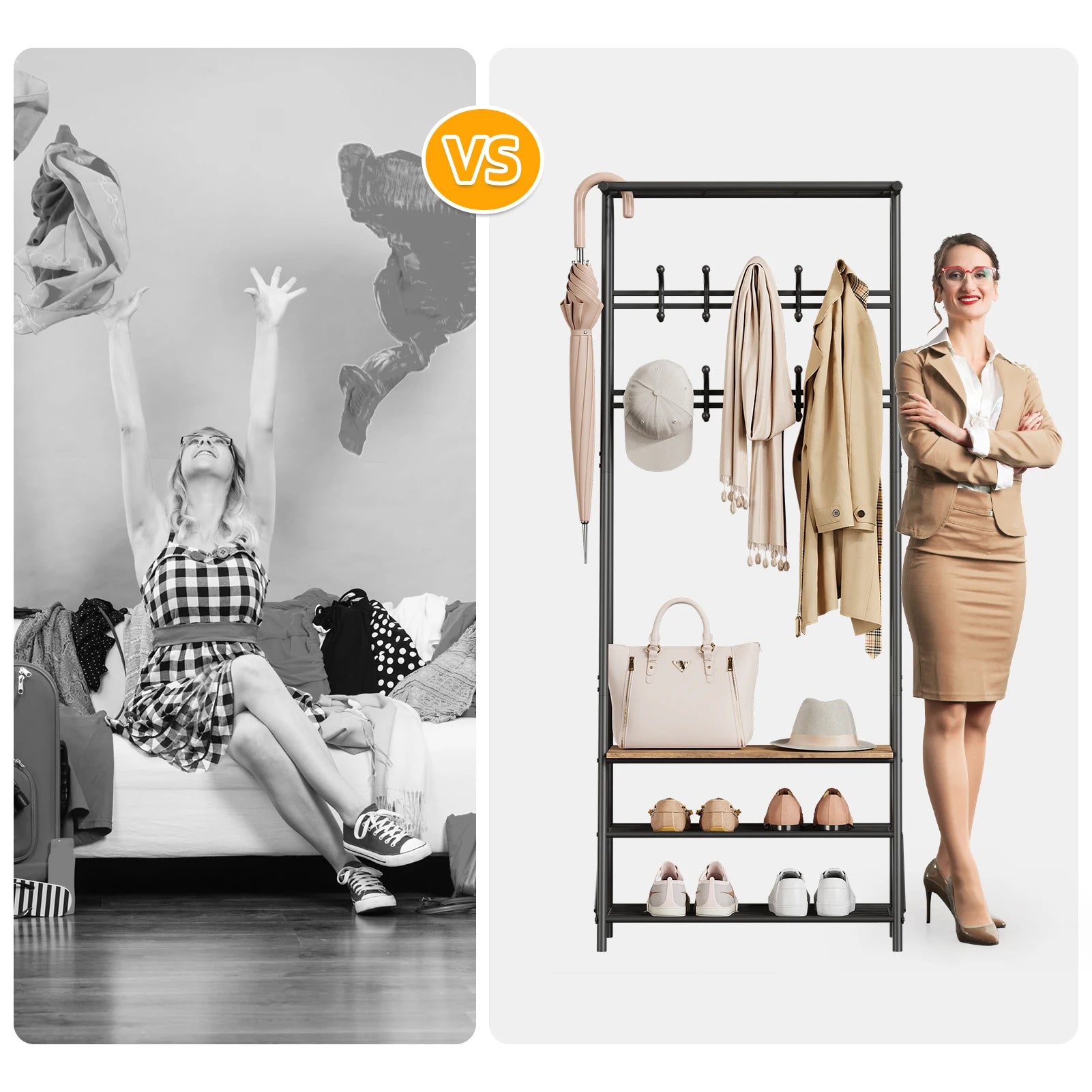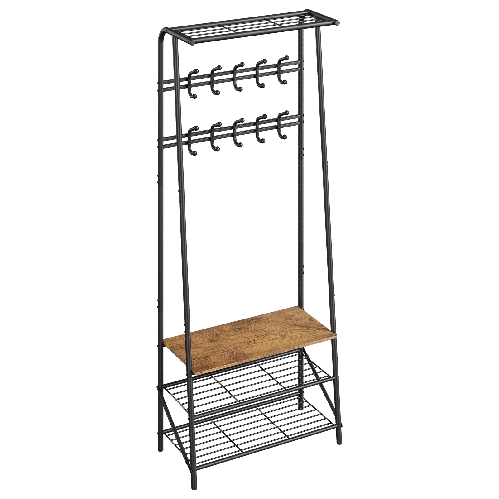 10 ganchos metálicos: espacio suficiente para colgar abrigos, bolsos, bufandas y sombreros sin saturar.